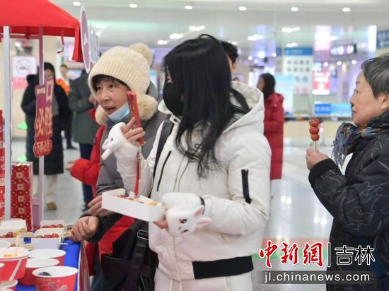 在出站口,《大東北我的家鄉(xiāng)》音樂響起,游客剛下火車便被充滿東北風情的快閃表演吸引,免費品嘗的凍柿子、凍梨、冰糖葫蘆,免費領取綠園文旅游玩攻略和多種購物優(yōu)惠券,讓全國各地的游客剛踏上東北的土地,就感受到的東北人的熱情。