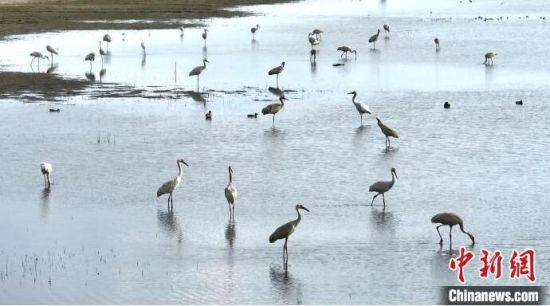 白鶴在鎮(zhèn)賚莫莫格濕地覓食!∨岁申 攝