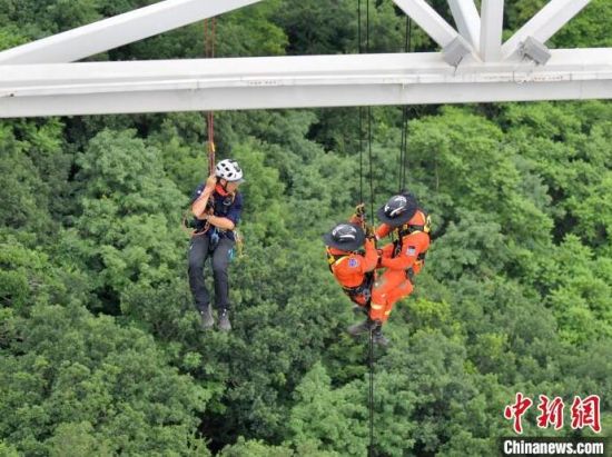 7月2日,吉林長(zhǎng)春,消防救援人員正在進(jìn)行繩索救援比拼。當(dāng)天,在吉林省森林消防總隊(duì)第六屆“火焰藍(lán)”大練兵比武中,7支隊(duì)伍模擬高空救援,圍繞不同氣溫、不同場(chǎng)地,模擬人員摔傷、墜崖等被困實(shí)戰(zhàn)情景,利用繩索救援技術(shù)開(kāi)展比拼。(完)