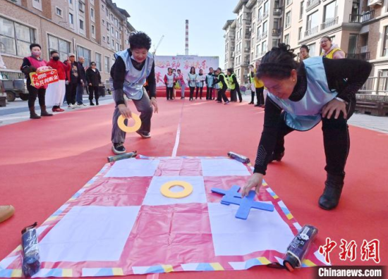 10月11日,在長(zhǎng)春市吉星社區(qū),近百名老年人參加重陽節(jié)趣味運(yùn)動(dòng)會(huì)。中新社記者 張瑤 攝