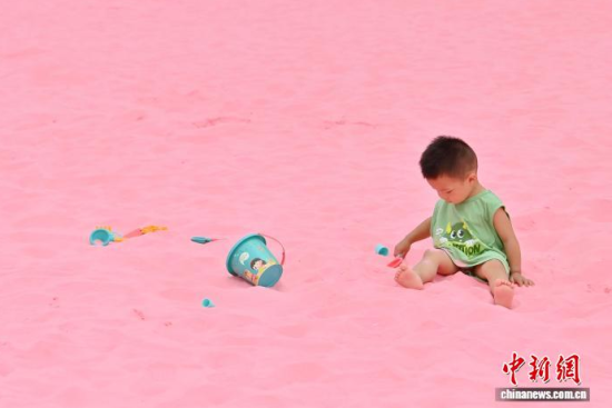 7月24日,長(zhǎng)春市一處人工打造的粉沙灘吸引眾多游客前來(lái)打卡。這片沙灘呈現(xiàn)出夢(mèng)幻的粉色,搭配周邊綠植和休閑設(shè)施,營(yíng)造出浪漫氛圍。中新社記者 張瑤 攝