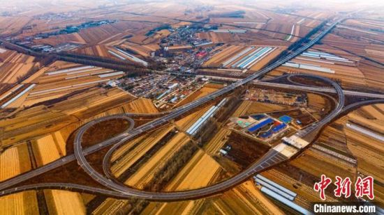 鳥(niǎo)瞰長(zhǎng)春都市圈環(huán)線高速公路東環(huán)二期項(xiàng)目。(資料圖) 吉林省交通運(yùn)輸廳供圖